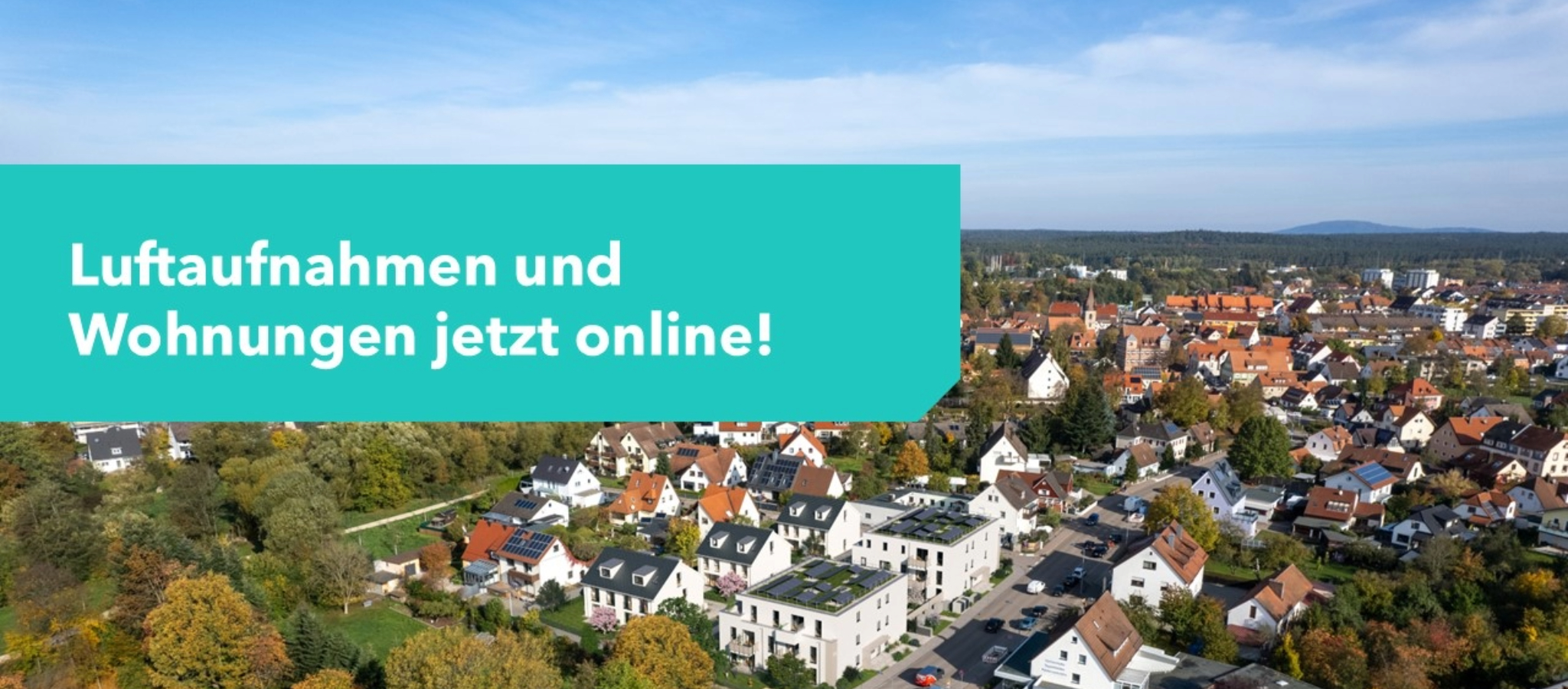 Die Luftaufnahmen mit eingezeichneten Außenvisualisierungen sowie das Wohnangebot sind jetzt online!